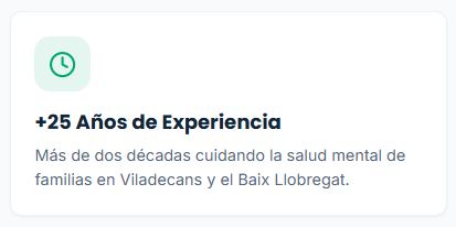 Garantía de Confianza: 25 años de Excelencia en Viladecans: No somos solo una clínica; somos el centro de psicología con mejores valoraciones reales de la zona. Avalados por el Certificado de Excelencia de Doctoralia y verificados por Trustindex, nuestra metodología combina experiencia y resultados probados por más de 350 testimonios positivos. Estos son los números que respaldan tu tranquilidad.